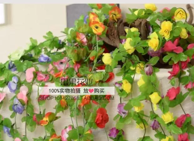Mô phỏng hoa hồng nhỏ, lục lạc, dây leo dài, hoa lụa, hoa giả, ống sưởi mái nhà, hoa giả trang trí, Hoa Liên giá sỉ - Hoa nhân tạo / Cây / Trái cây