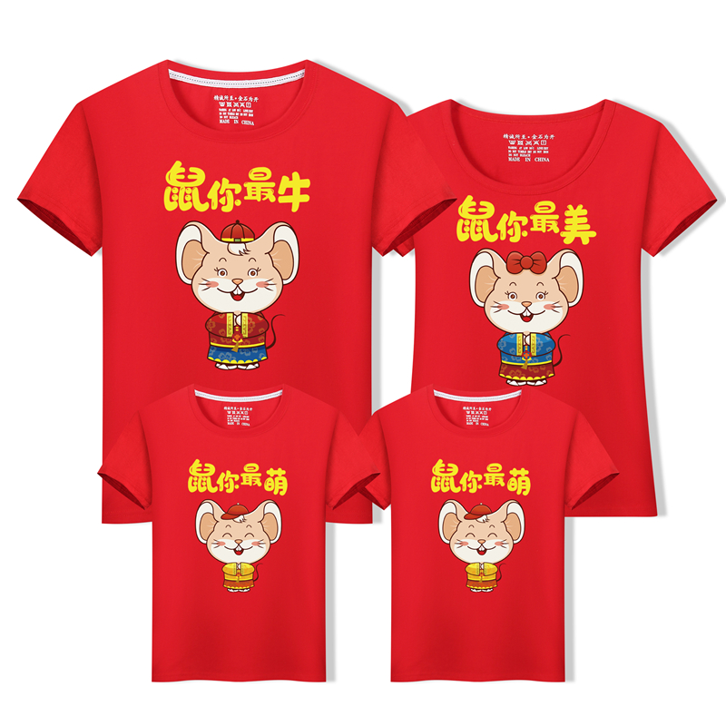 Năm mới mẫu giáo cha mẹ mặc con mùa hè 2020 áo đỏ kiểu tây ba gia đình mẹ và con gái áo thun tay ngắn - Trang phục dành cho cha mẹ và con