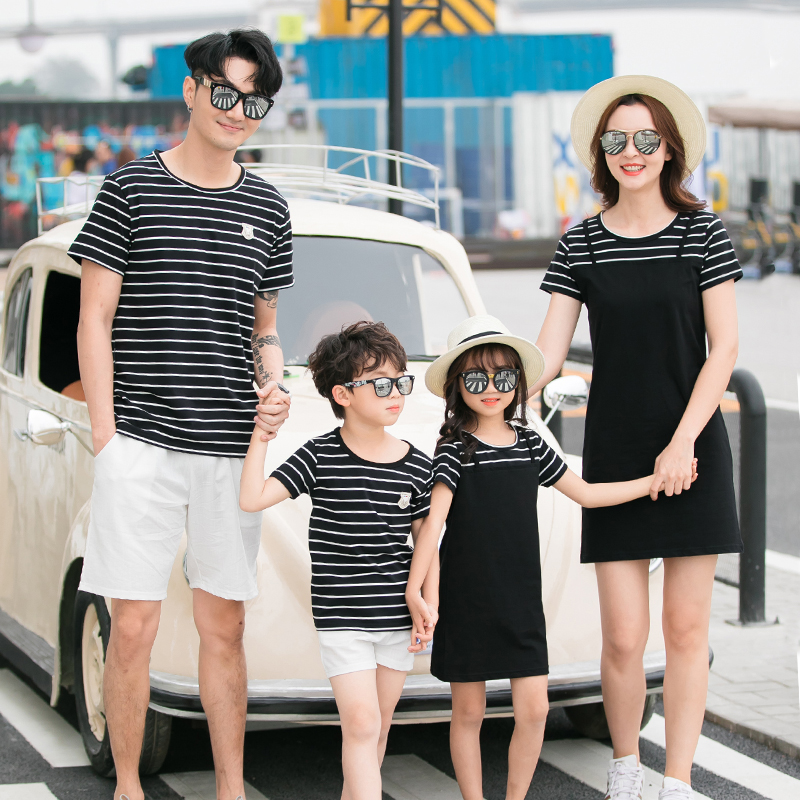 Khác nhau cha mẹ-con mặc mùa hè gia đình của bốn bộ quần áo sọc - Trang phục dành cho cha mẹ và con