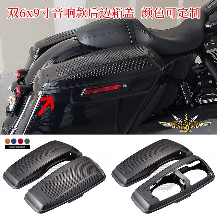 Vàng đen tùy chỉnh Harley sửa đổi Advanblack lượn đường vua 6 * 8 inch âm thanh kép đuôi hộp bên cạnh hộp tùy chỉnh - Xe gắn máy phía sau hộp