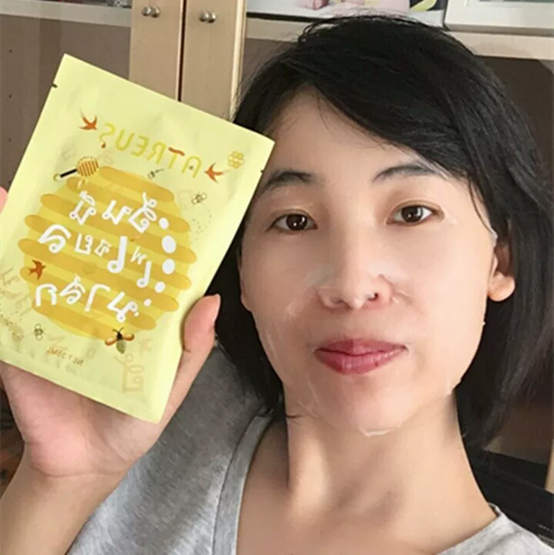 Thái Lan AT Mask ATREUS Honey Birds Nest Silk Mask Giữ ẩm Sửa chữa dưỡng ẩm Gói 10 - Mặt nạ