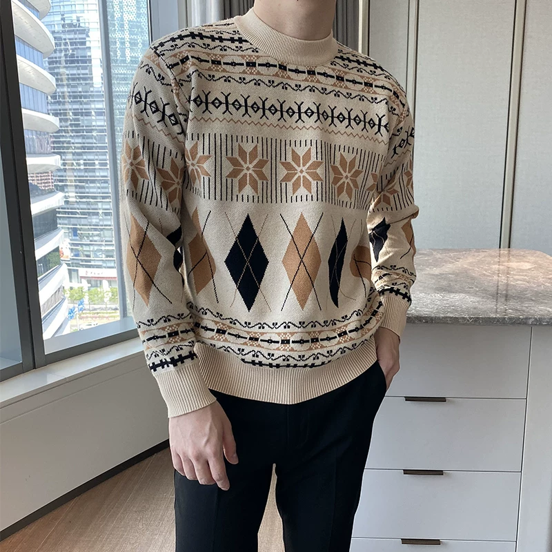 Áo len nam mùa thu và mùa đông của Ma Kết siêu lỏng retro phiên bản Hàn Quốc của gió lười Giáng sinh cổ điển Fair Isle đan - Áo len