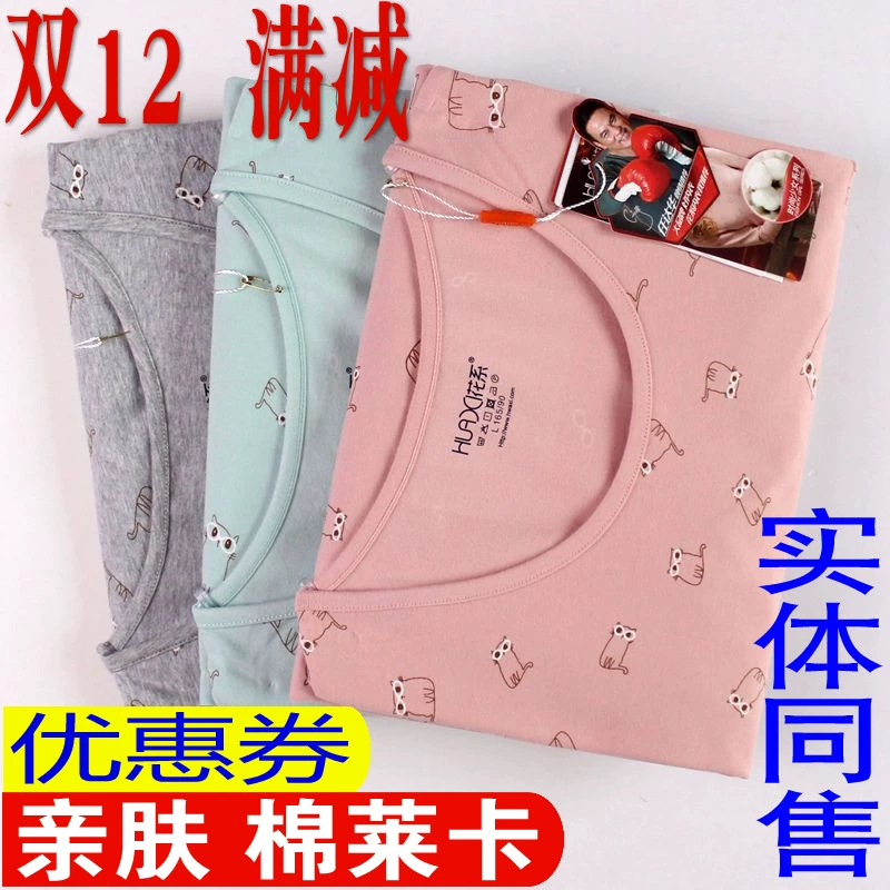 Yahuilin thương hiệu quần áo cotton nữ mùa thu Qiuku phù hợp với kích thước lớn mẹ đồ lót nhiệt phần mỏng in cổ tròn mùa thu và mùa đông - Phù hợp với nóng lên