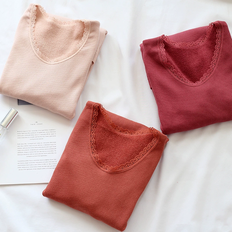Bian Zhiyun Qiu Yi Qiu quần đồ lót nhiệt phù hợp với phụ nữ mùa thu và mùa đông Slim body ren v-cổ thoải mái phần mỏng đơn giản - Phù hợp với nóng lên