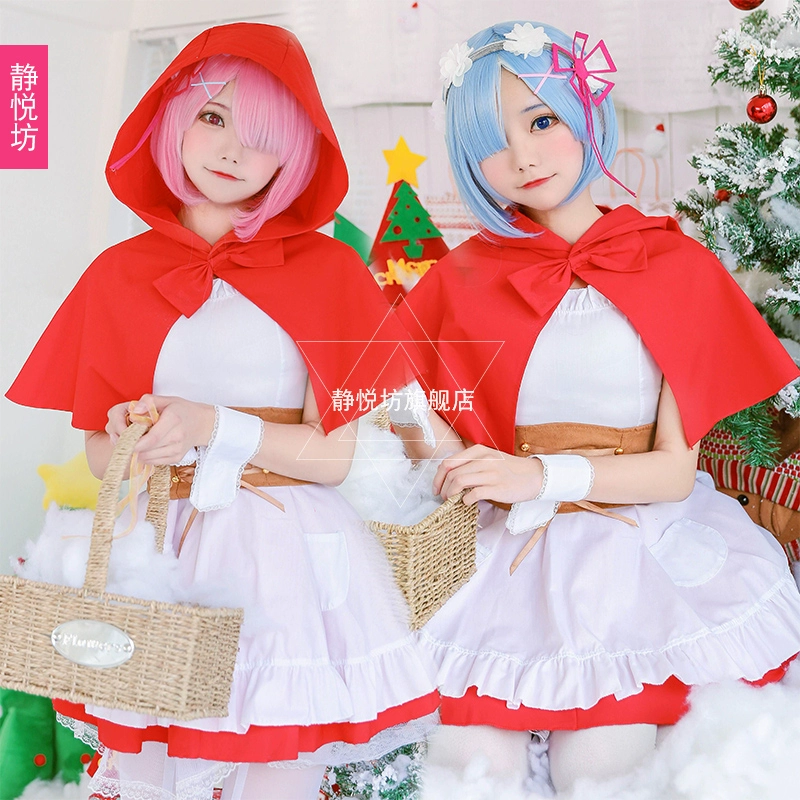 Rem cosplay Reimram cos trang phục Giáng sinh Trang phục Giáng sinh Little Red Red Hood Hood Cape Cloak Dress - Cosplay