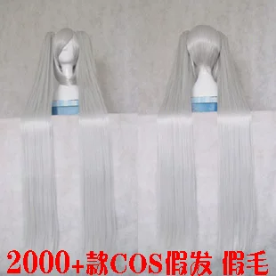 Cosplay tóc giả Vocaloid Hatsune V nhà MIKU thép tông màu xám bạc tóc dài 120 cm tóc giả cột đuôi ngựa - Cosplay