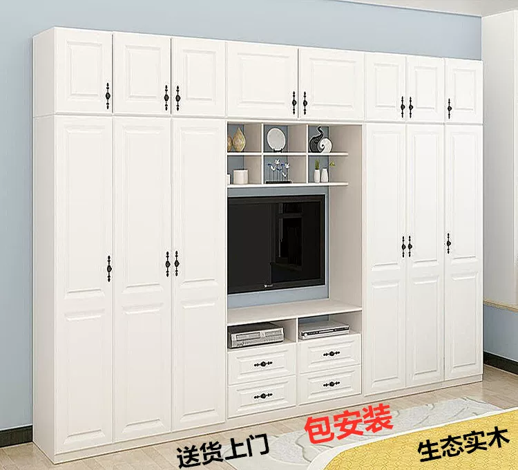 Sinh thái gỗ rắn phòng khách Tủ quần áo tủ quần áo tích hợp phòng ngủ kết hợp tủ trắng TV tủ lưu trữ tích hợp tường kết hợp - Buồng