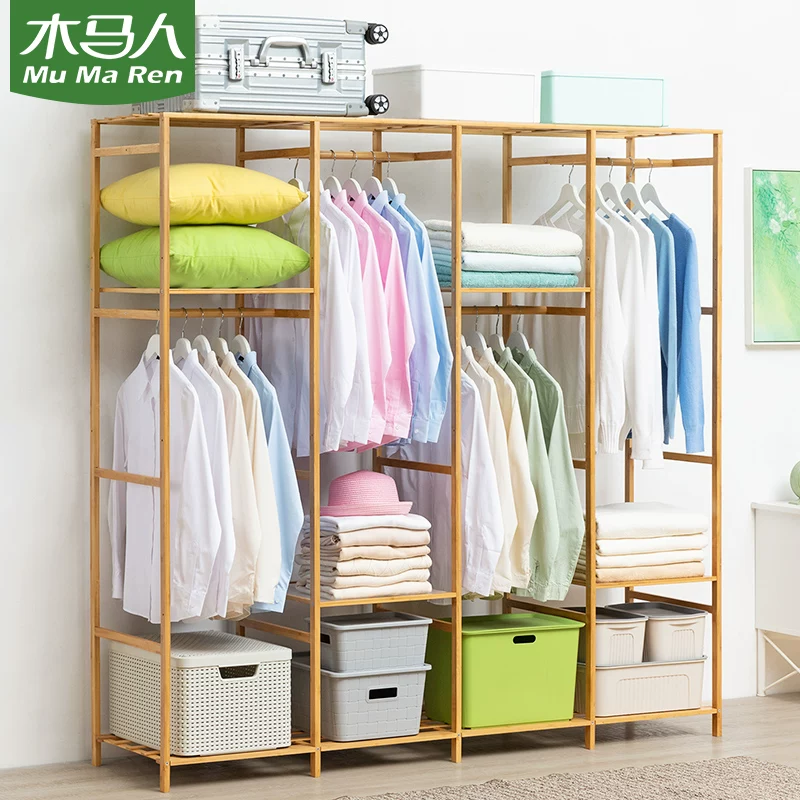 Tủ quần áo đơn giản hiện đại tối giản phòng ngủ lắp ráp vải rắn gỗ vải nghệ thuật tủ quần áo treo cho thuê tủ lưu trữ - Buồng