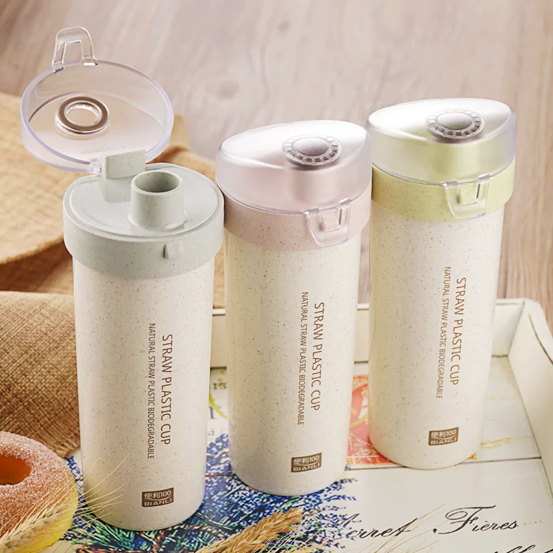 Dễ thương chéo cách nhiệt Cup nữ với nâng dây Cup Cup rơm Đôi bìa đôi Sử dụng sinh viên trẻ em cầm tay cốc nước ấm - Tách