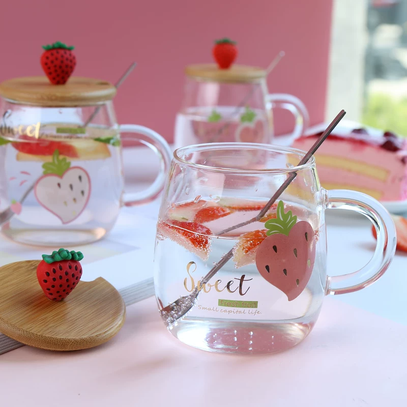 Với vảy sữa thủy tinh màu đỏ in gió trong suốt cô gái trái tim trà trái cây có nắp cốc nước rơm người lớn - Tách