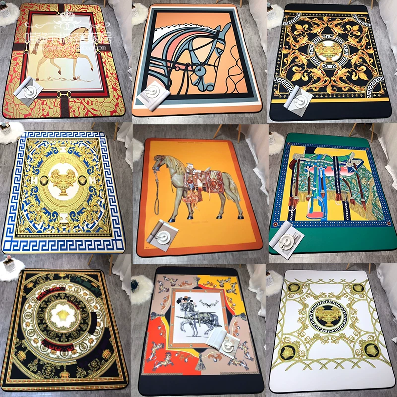 Phong cách châu Âu sang trọng H ngựa pha lê nhung dày in trượt mô hình phòng trang trí thảm biệt thự phòng khách thảm phòng ngủ - Thảm sàn