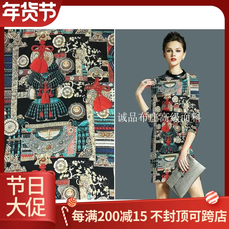 Phong cách dân tộc Trung Quốc in kỹ thuật số lụa nặng căng lụa satin vải lụa dâu tằm váy sườn xám chất liệu - Vải vải tự làm
