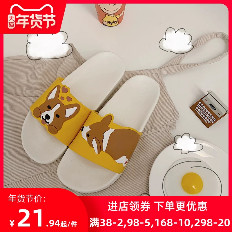 Dép đi trong nhà chó corgi dễ thương hàn quốc dép nữ đi trong nhà lưới màu đỏ trong nhà dép chống trượt - Trang chủ