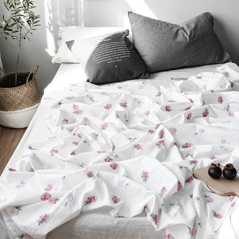 Moonlight nhà dệt ins cô gái trái tim nhỏ dâu in ga giường đơn mảnh bông sinh viên phòng ngủ giường đơn bông nguyên chất - Khăn trải giường