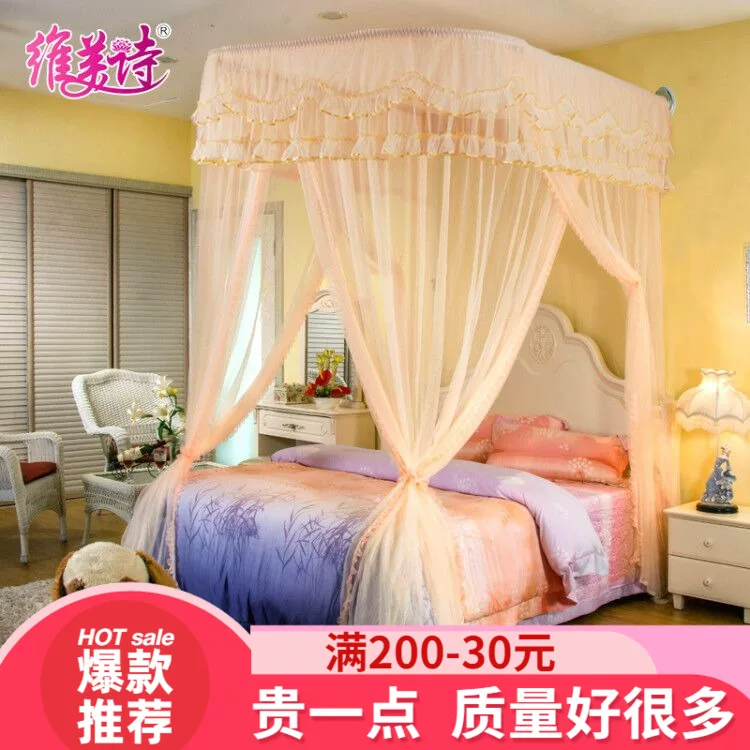 Hướng dẫn đường ray hình chữ U lưới chống muỗi 1,5m1,8 mét giường đôi nhà 1,2 mét sàn công chúa gió ba cánh cửa mở tài khoản - Lưới chống muỗi