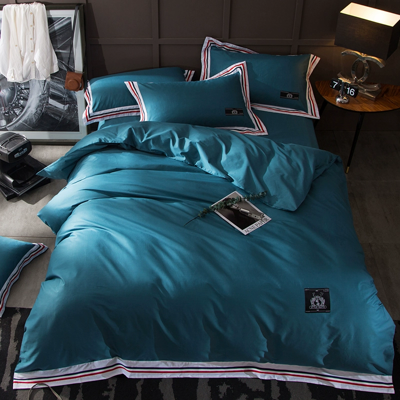 Bộ bốn mảnh đơn giản theo phong cách thể thao Yaxian, bộ khăn trải giường và chăn lông vũ bằng vải cotton cotton tinh khiết 1,5 / 1,8m - Bộ đồ giường bốn mảnh