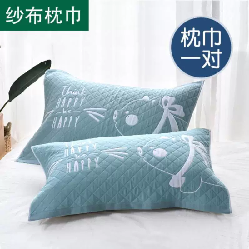 . Khăn gối, cotton, một đôi, kiểu Châu Âu đơn, chống trượt, không rụng, gạc gia dụng bằng cotton, khổ lớn, rộng - Khăn gối