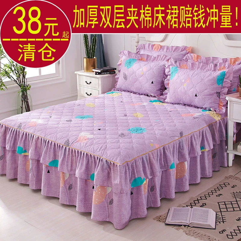 Chăn bông trải giường 1,5m trải giường 1,8m giường gạo cộng với giường bông nhóm 2m trải giường có thể được trang bị ba bộ bốn bộ dày - Váy Petti