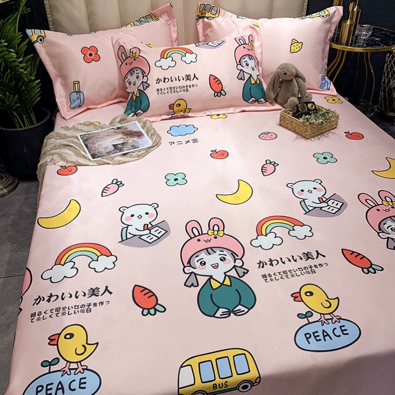 Nệm mùa hè băng lạnh lụa cao su Thảm trải giường ba mảnh một mảnh phim hoạt hình trọn gói Bộ trải giường mùa hè 9 mùa - Thảm mùa hè