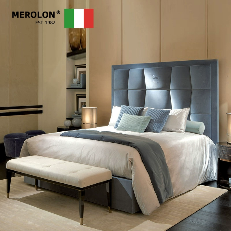 Giường ngủ bọc da bằng gỗ cứng màu sáng sang trọng kiểu Ý 1,8 mét Giường cưới đơn giản kiểu Mỹ Nội thất biệt thự Giường đôi kiểu Âu - Giường