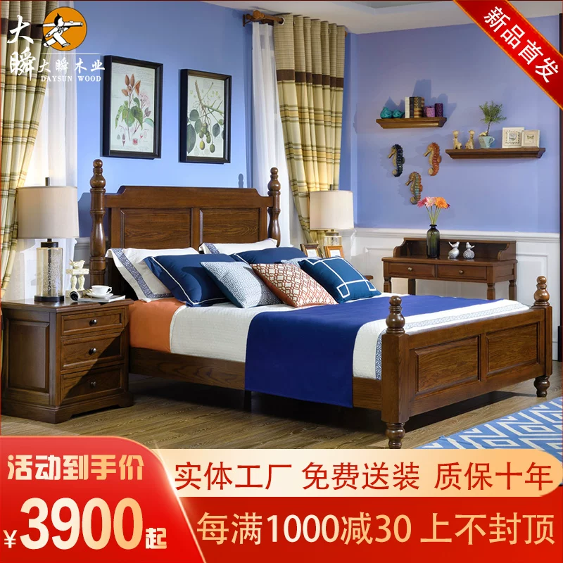 Fukai đồng quê Mỹ giường đôi gỗ sồi đỏ gỗ rắn 1,5 mét 1,8 mét đồ nội thất phòng ngủ giường đôi số 8 - Giường