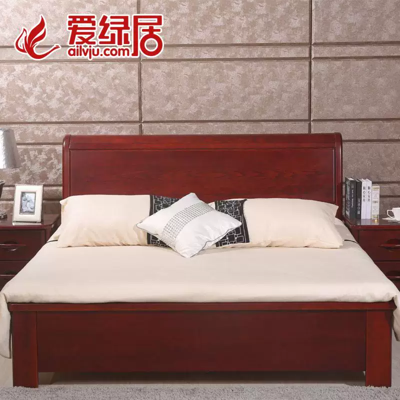 Đồ nội thất Yujia giường gỗ cao su tất cả gỗ óc chó màu gỗ chắc chắn giường màu gỗ 1,2 / 1,5 / 1,8 mét - Giường