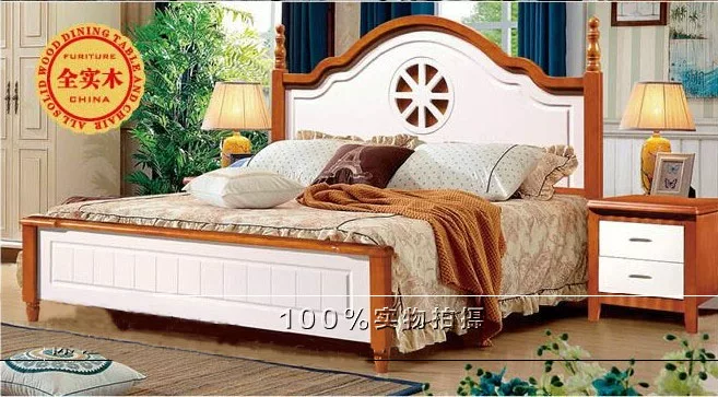 Tháng ba phong cách đồng quê Anh Anh gỗ rắn Mỹ Mục vụ sơn đồ nội thất cổ đau khổ vẽ tay giường lớn Địa Trung Hải - Giường