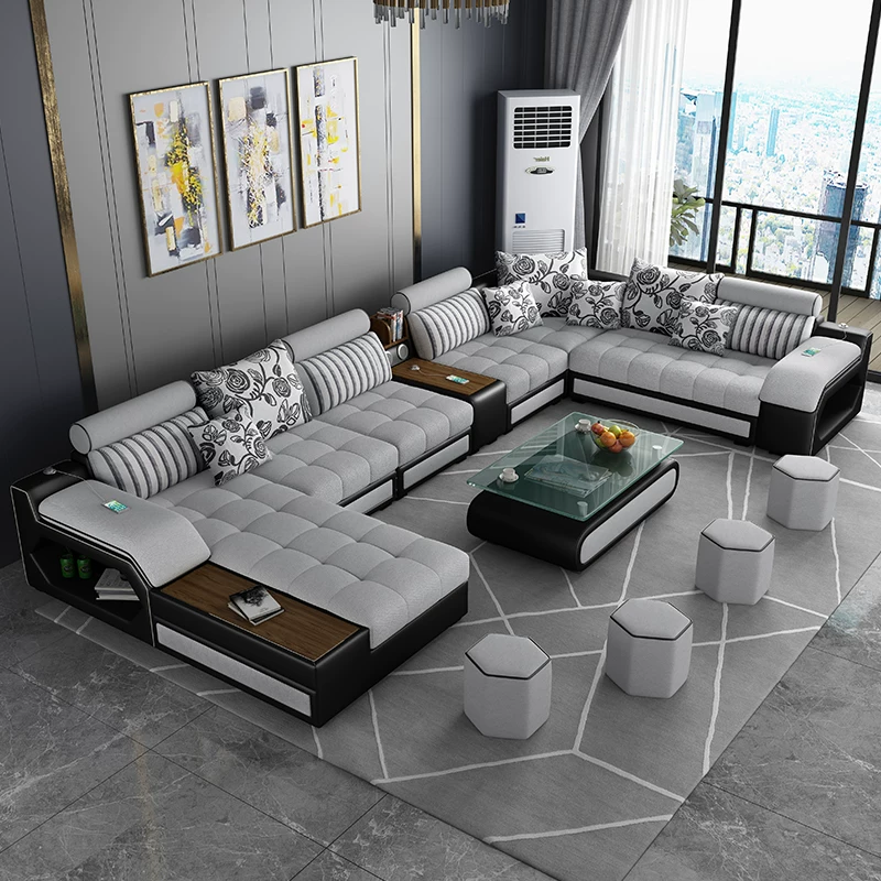 Kích thước sofa vải căn hộ chung cư tối giản công nghệ hiện đại sofa vải bàn cafe tủ tivi phòng khách kết hợp nội thất trọn gói - Ghế sô pha