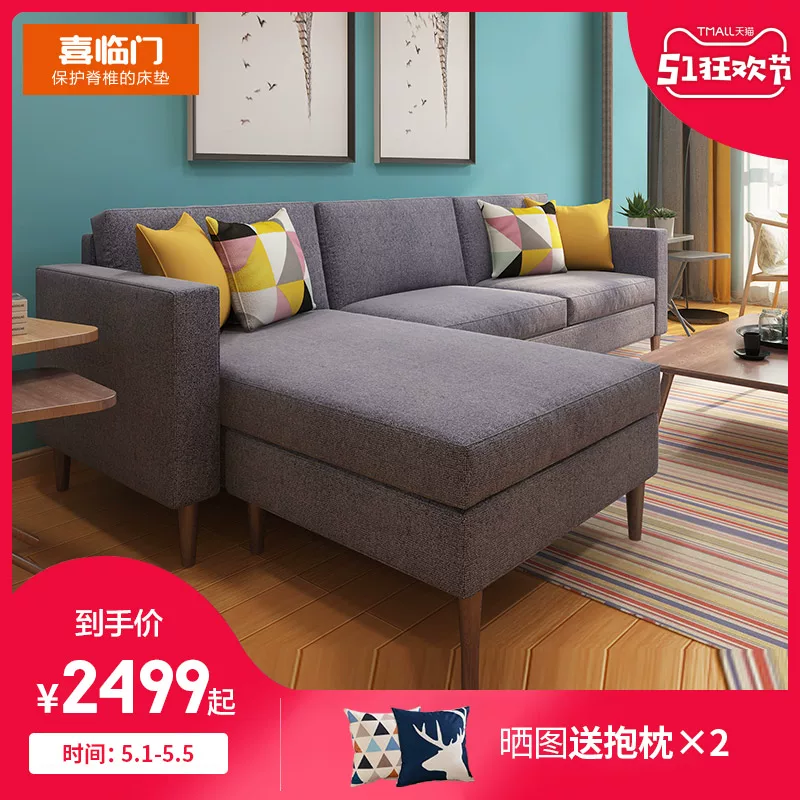 Scandinavia đơn giản sofa vải đơn giản hoàn thành phòng khách hiện đại cho thuê phòng ba bốn góc chaise kết hợp bộ - Ghế sô pha