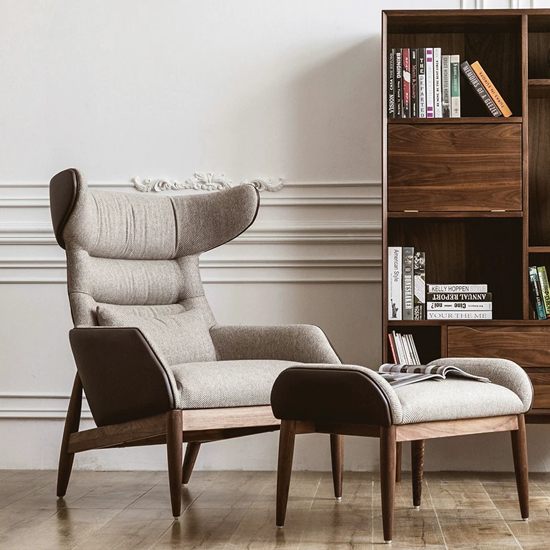 Phong cách Bắc Âu đơn giản ánh sáng sang trọng đồ nội thất bằng da màu vải phù hợp với gỗ óc chó màu đen khung gỗ cao trở lại giải trí ghế sofa đơn - Ghế sô pha