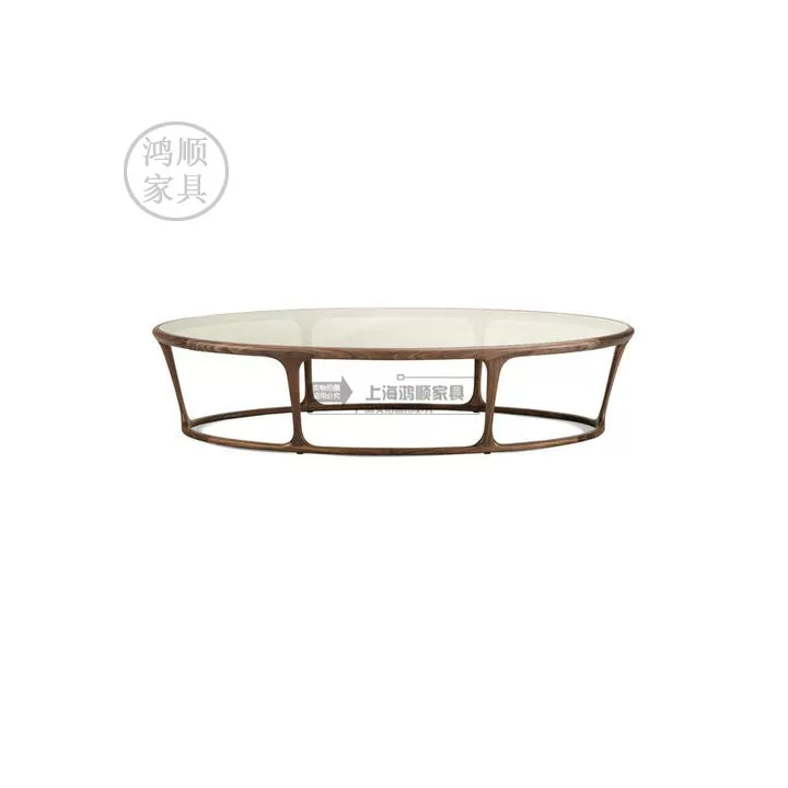Phong cách bắc âu bàn cà phê gỗ nguyên khối đơn giản Bàn cà phê bàn cà phê gỗ óc chó màu đen đơn giản Bàn cà phê hình bầu dục Bàn thấp kiểu Nhật - Bàn trà