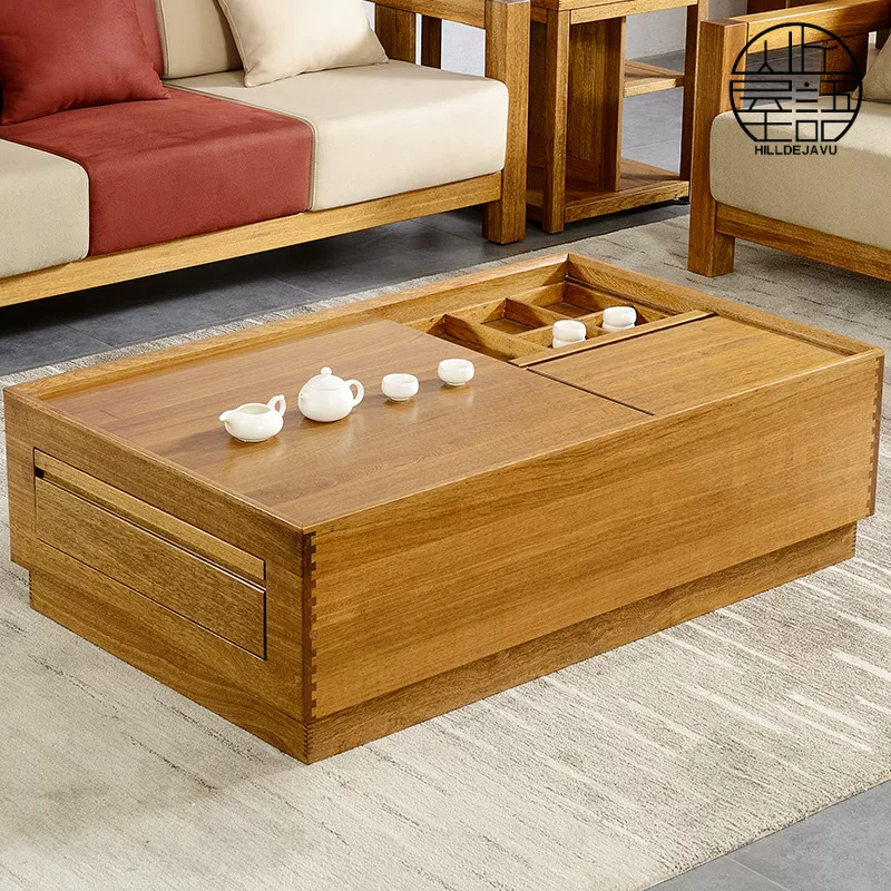 Nội thất gỗ tếch Gỗ Phòng khách Hình chữ nhật Đa chức năng Đơn giản với Ngăn kéo Gia đình Bàn cà phê Gỗ rắn Kết hợp Tủ TV - Bàn trà