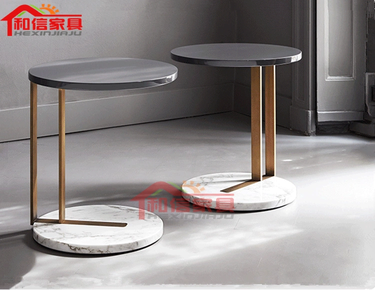 Nội thất Luopin khu vực tiếp khách tối giản hậu hiện đại, bàn bên cạnh sofa bằng đá cẩm thạch sang trọng nhẹ, bàn cà phê tròn nhỏ có thể được tùy chỉnh - Bàn trà