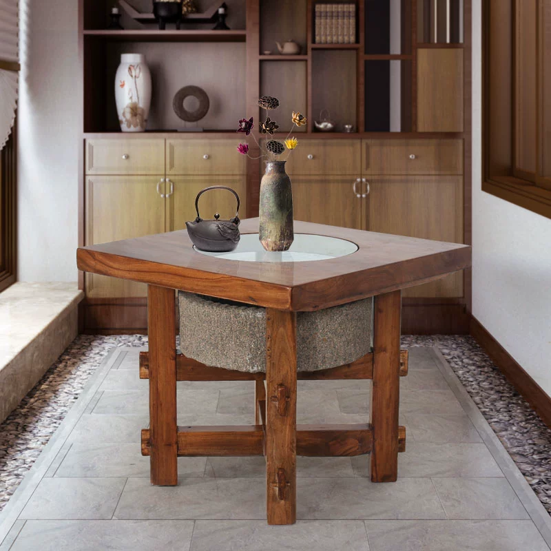 Bàn trà cây du cũ, bàn trà Trung Quốc mới không sơn, bàn cà phê đơn giản bằng gỗ nguyên khối, kết hợp bàn trà và ghế nội thất có thể được tùy chỉnh - Bàn trà