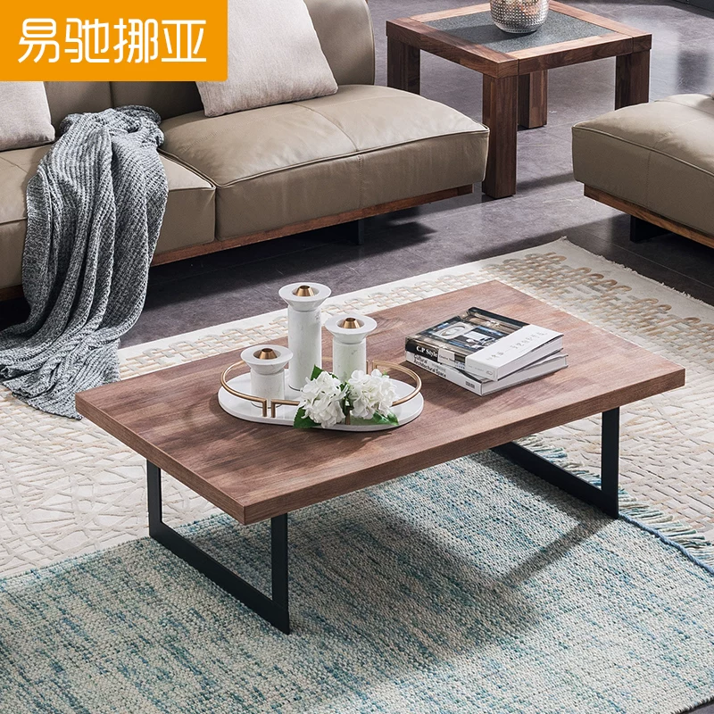 Yi Chi Noah Nội thất phòng khách Máy pha trà Bàn màu đen Quả óc chó gia dụng Bàn chân sắt Gỗ rắn Bàn cà phê Hình chữ nhật Bàn trà nhỏ - Bàn trà