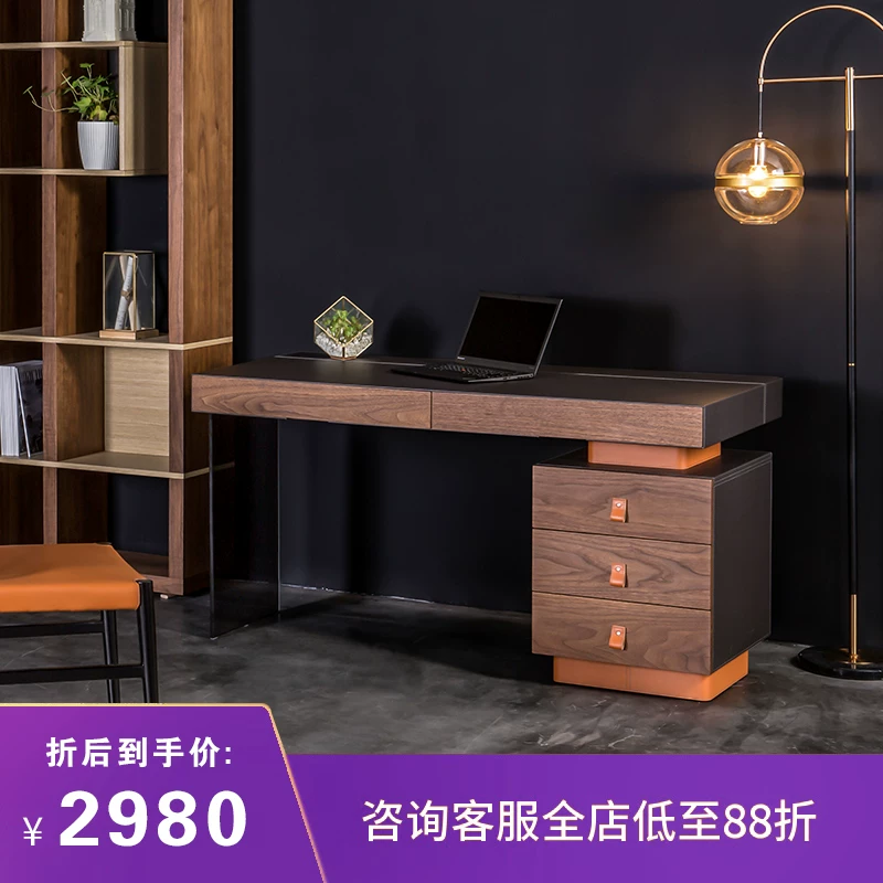 Thạc sĩ da yên ngựa phong cách thiết kế tối giản của Ý bàn làm việc đơn giản hiện đại bàn làm việc kết hợp đồ nội thất - Bàn