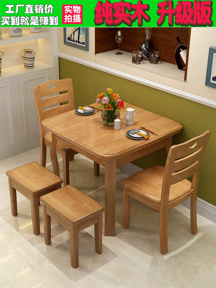 Tất cả các loại bàn ăn bằng gỗ nguyên khối bàn ăn gấp gia đình bằng gỗ sồi bàn ăn căn hộ nhỏ bàn ăn và ghế kết hợp Trung Quốc đơn giản và hiện đại - Bàn