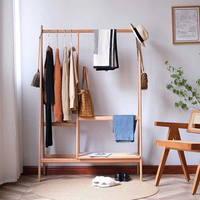 Nội thất Yinli Mùa thu Maple Coat Rack Giá treo sàn gỗ rắn Móc treo đồ gia đình kiểu Bắc Âu hiện đại và đơn giản - Kệ