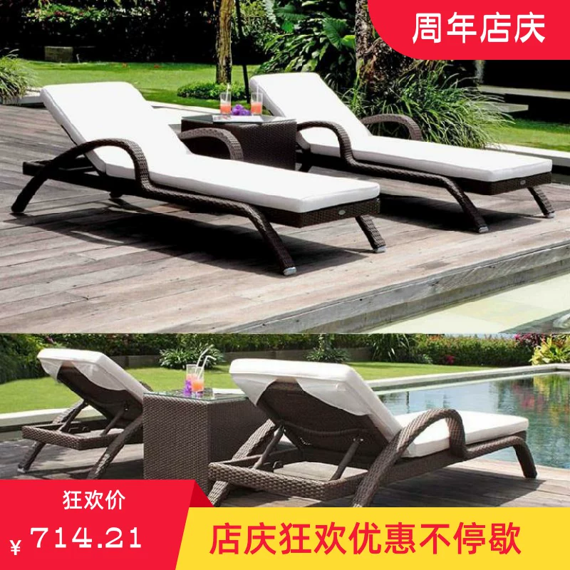 . Gấp giường phẳng mây nghệ thuật Âu Mỹ Hồ bơi bàn ghế mây sáng tạo đa năng ban công bãi biển chỗ ngồi ngoài trời phòng ngoài trời - Bàn ghế ngoài trời / sân