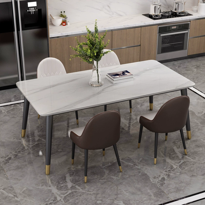 Đồ nội thất có thể tùy chỉnh căn hộ nhỏ hộ gia đình hình chữ nhật bàn ăn bằng đá cẩm thạch và ghế kết hợp bàn ăn bằng đá phiến đá sang trọng - Bộ đồ nội thất