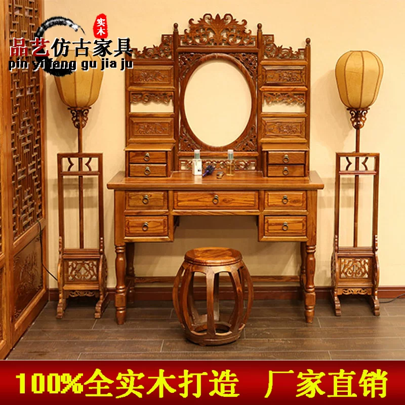 Đồ nội thất cổ Bàn trang điểm Bàn trang điểm Bàn trang điểm Gỗ rắn Trung Quốc Đồ nội thất hiện đại Phòng ngủ Bàn đầu giường - Bộ đồ nội thất