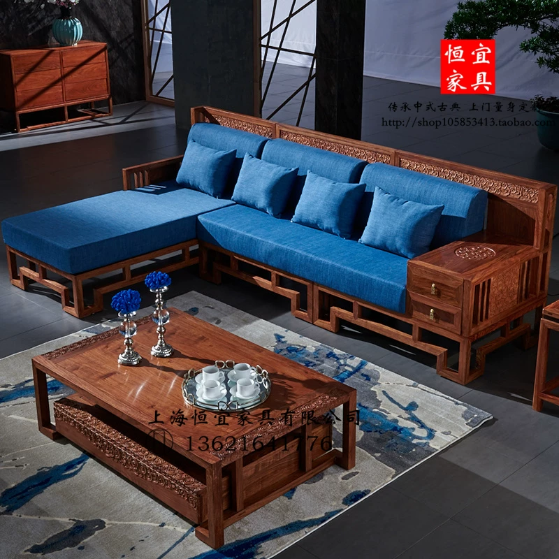 Gỗ đàn hương đỏ Hedgehog Ghế sofa hình chữ L đồ nội thất bằng gỗ rắn hiện đại đơn giản bằng gỗ gụ Xiangyun ghế sofa góc gỗ cẩm lai mới của Trung Quốc - Bộ đồ nội thất