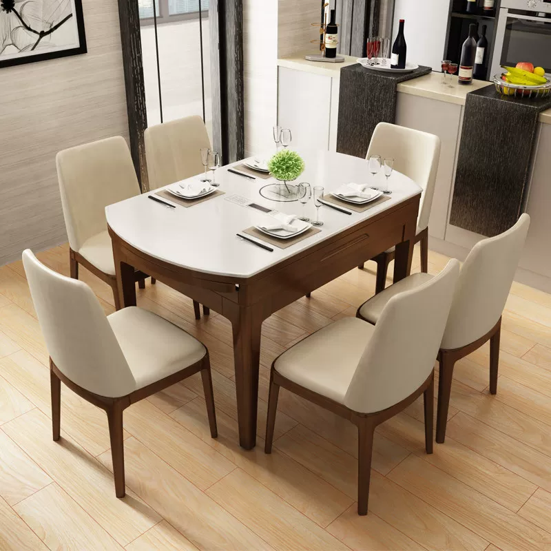 Căn hộ nhỏ bằng gỗ rắn kiểu Trung Quốc mới hiện đại và đơn giản, bàn ăn gấp và ghế kết hợp đồ nội thất cho 6 người ở nhà - Bộ đồ nội thất