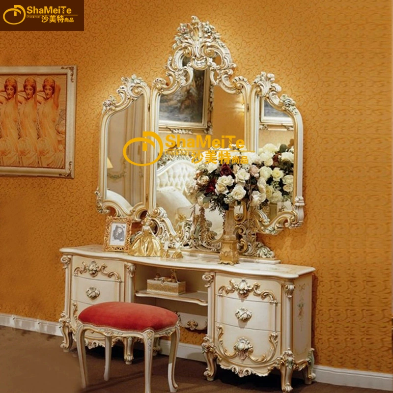 Bàn trang điểm phong cách châu âu bàn trang điểm gỗ nguyên tấm kết hợp gương cung điện Pháp ngăn tủ đựng đồ sang trọng nội thất biệt thự cao cấp - Bộ đồ nội thất