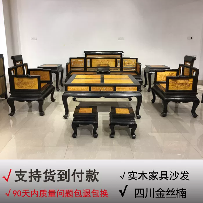 Đồ nội thất cổ Trung Quốc Tứ Xuyên Daye Nanmu sofa Jinsi Nanmu đồ gỗ mun viền gỗ 9 mảnh đặt - Bộ đồ nội thất