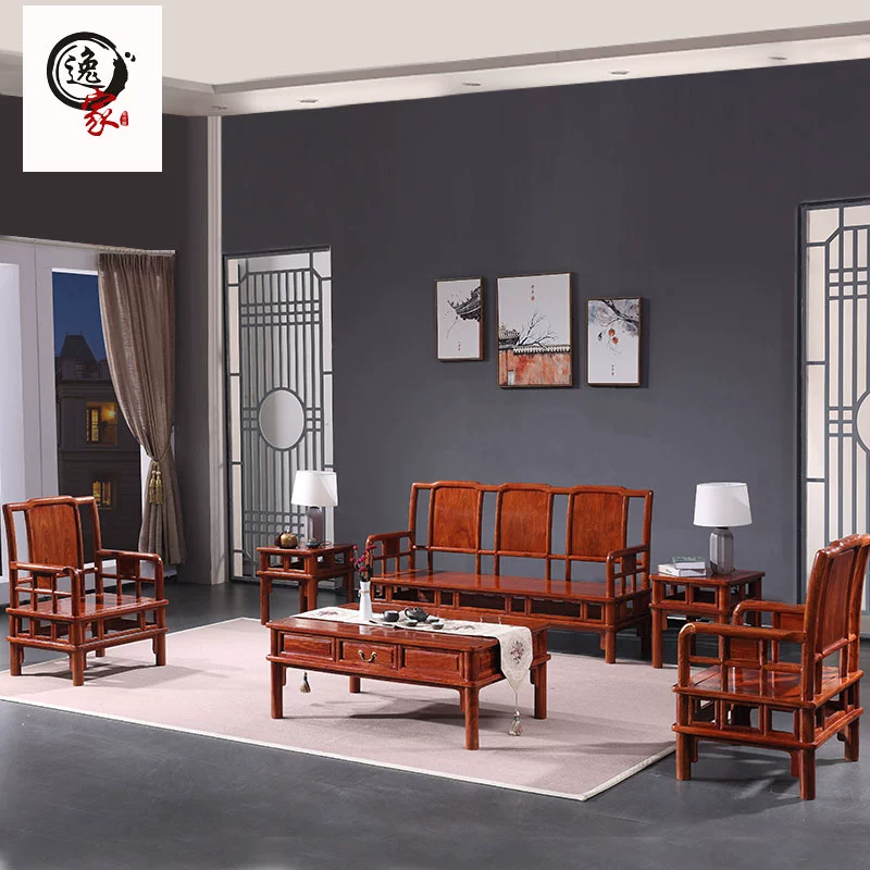 Gỗ Đinh hương Miến Điện Gỗ Hồng Bộ Phong cách Trung Quốc Mới Sofa Gỗ Rắn Daguo Gỗ Hồng Bộ Bộ Gỗ Hồng Bộ 6 Đồ Gỗ Gỗ Gụ - Bộ đồ nội thất