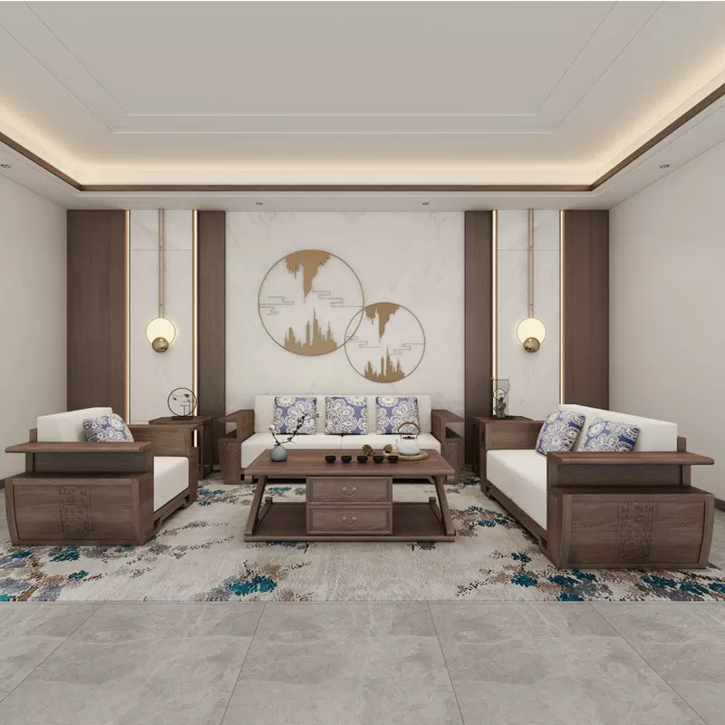 Mới Trung Quốc phong cách sofa gỗ rắn bàn cà phê kết hợp ánh sáng hiện đại sang trọng Zen da nghệ thuật sofa phòng khách đồ nội thất tùy chỉnh 123996 - Bộ đồ nội thất