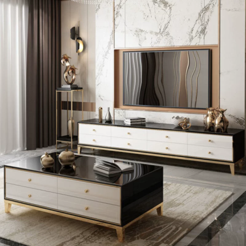 Hậu hiện đại ánh sáng sang trọng bàn cà phê đá cẩm thạch sang trọng tủ TV kết hợp phòng khách sàn tủ bàn cà phê bàn nội thất hoàn chỉnh - Bộ đồ nội thất