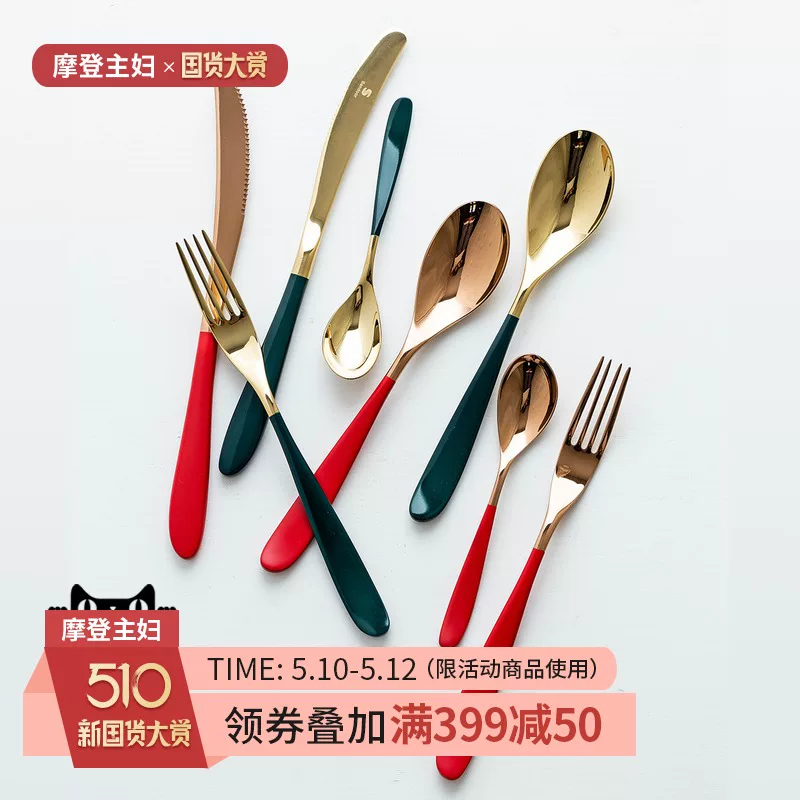 Bà nội trợ hiện đại Trăng non Châu Âu Thép không gỉ Fork Fork Đặt Western Steak Dao Spoon Fork Bộ đồ ăn gia dụng - Đồ ăn tối