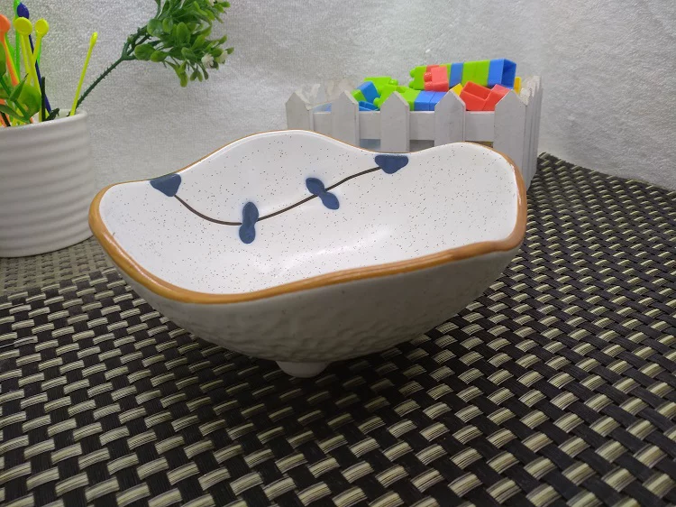 Hình tam giác chân cao bát salad trái cây gia đình sáng tạo bát súp nhỏ nhà hàng phương tây Bát tráng miệng phong cách châu Âu Bộ đồ ăn cá tính bằng gốm - Đồ ăn tối